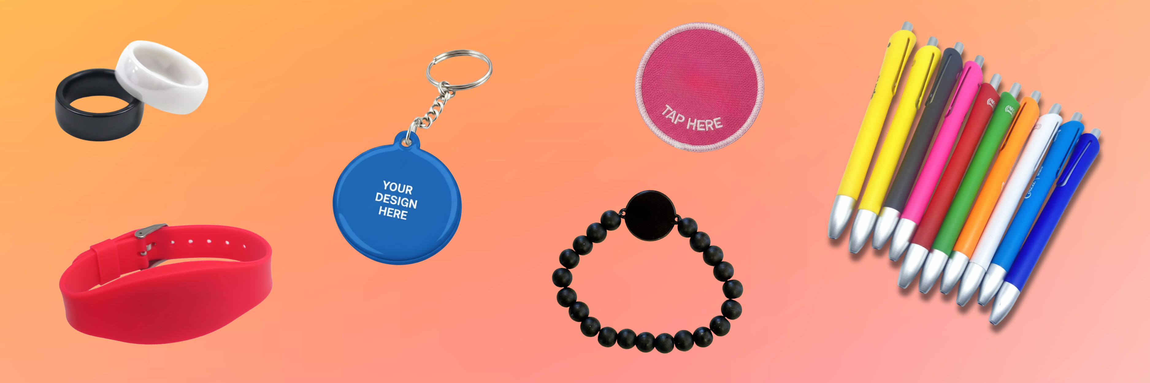 Offer something your clients havenβt seen before... custom NFC products like stickers, pens, keychains, that turn ordinary giveaways into interactive experiences. Perfect for branded swag, events, and marketing kits, they tap straight to any digital content without cluttering up your design.